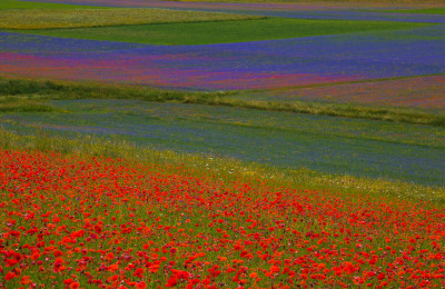 Prove di Fioritura 2017 a Castelluccio di Norcia (alta Valnerina, Perugia, Umbria): sono state organizzate delle navette dopo i terribili sismi del 2016. E dall'8 luglio 2017 si potrà arrivare autonomamente passando per Norcia.