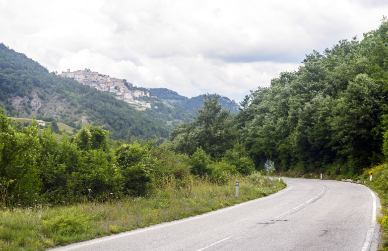 Nella foto: Monteleone di Spoleto e la strada che vi conduce.
