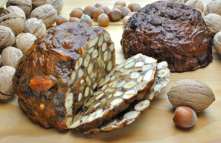 Il dolce tradizionale delle vacanze natalizie ternane (Umbria del Sud): il Pampepato. Ingredienti? Cioccolato, noci, frutta secca, uvetta, cannella, miele, farina...
