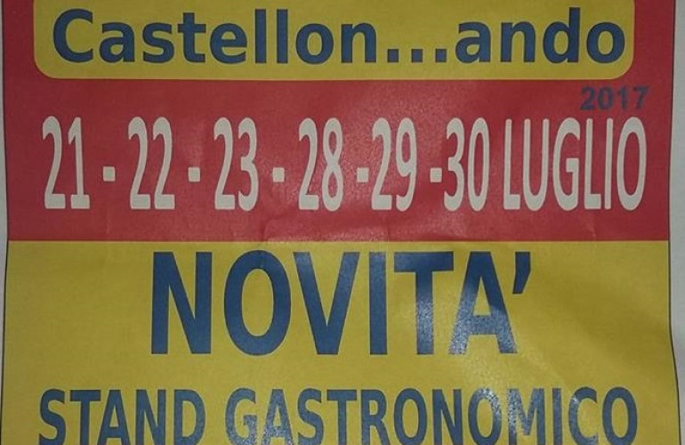 È tutto pronto per l'edizione 2017 di Castellonando, l'ormai collaudata manifestazione enogastronomica e musicale patrocinata dai Comuni di Terni, di Ferentillo e dalla Regione Umbria, che si svolgerà a Castellone Alto, o Castellonalto di Ferentillo (Valnerina Ternana, Parco Fluviale del Nera, Terni, Umbria), a partire da venerdì 21 luglio 2017 per proseguire nei giorni 22, 23, 28, 29 fino a domenica 30 luglio 2017.