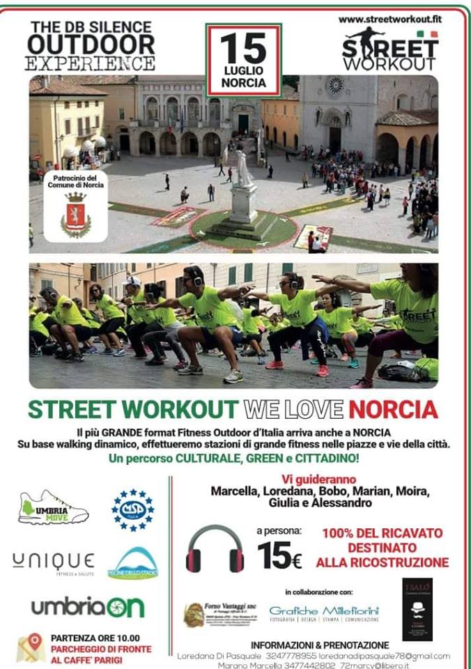Per maggiori informazioni sullo Street Workout, i tipi allenamento previsti e sull'evento di silent outdoor fitness di Norcia: